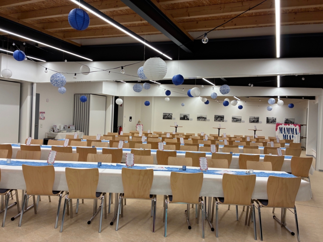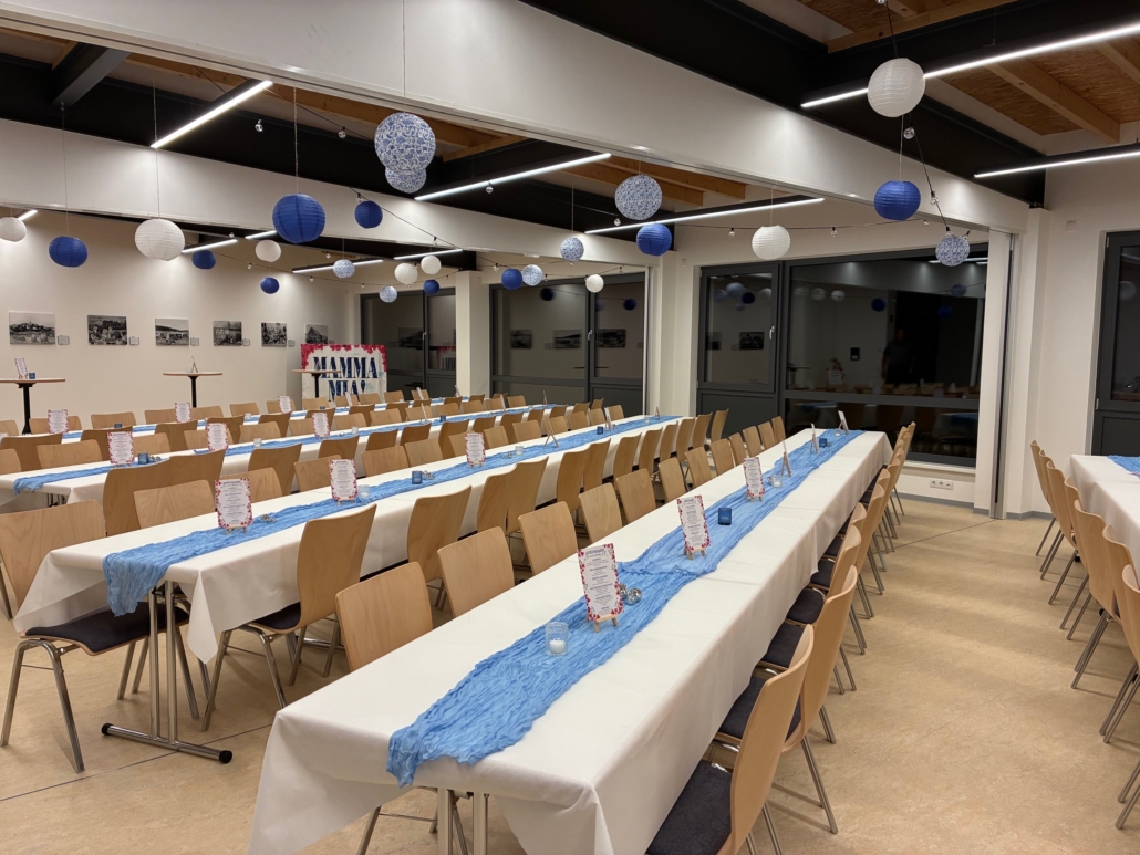 Unser Dorfgemeinschaftshaus kann im Sinne der Haus- und Benutzungsordnung für die unterschiedlichsten Anlässe gemietet werden. Der komplette Saal bietet anhand der vorhandenen Tische (Maße 140 x 70 cm) und Stühle Sitzmöglichkeiten für bis zu 120 Personen. Zusätzlich können bis zu 5 Stehtische gemietet werden.